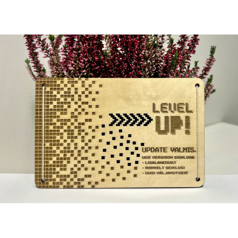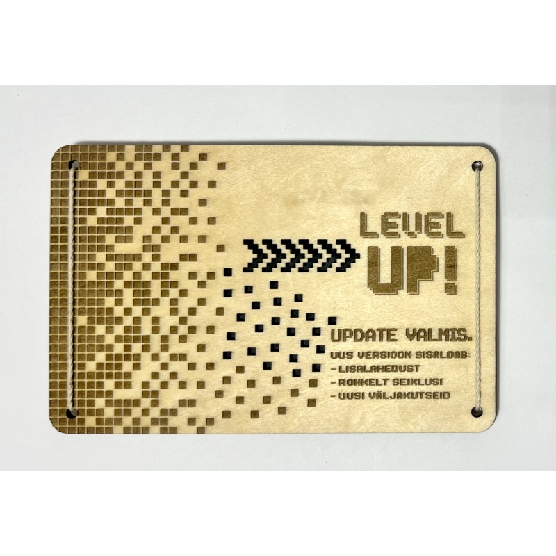 "Pikslid" on ideaalne kaart, et tähistada elu erilisi saavutusi ja uusi algusi – olgu selleks koolilõpp, tööalane edasiminek, uus hobi või lihtsalt järgmine samm isiklikus arengus. Kaardi graafiline pikslidisain ja mänguline sõnum „LEVEL UP!“ sümboliseerivad kasvu, uusi võimalusi ja rõõmu, mida iga uus „elutase“ endaga kaasa toob.