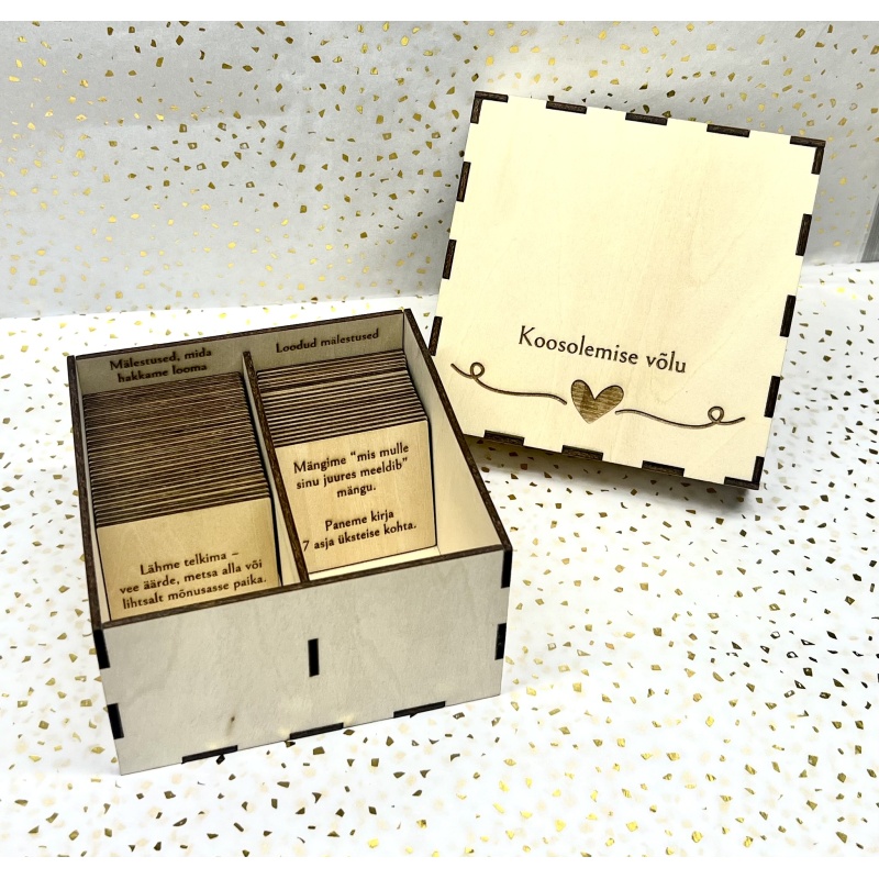 Vali kaart siis, kui tunned, et tahaks midagi koos teha. Kui hetk on loodud, liigub kaart teise lahtrisse – sinna, kus talletuvad teie ühised mälestused.