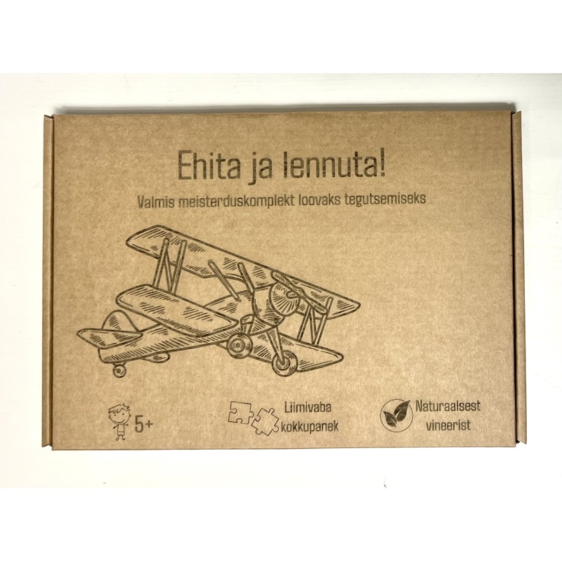 „Ehita ja lennuta!“ on käsitööna valmistatud puidust meisterduskomplekt, mis pakub rõõmu nii väikestele kui suurtele. Tugevast pähklivineerist kokkupandav lennuk on ideaalne loovaks ajaveetmiseks, arendab käelist osavust ja sobib hästi ka kingituseks.